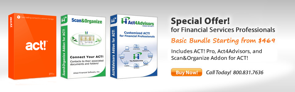 Since 1993, Allied Financial Software, Inc. - the creator of Act4Advisors Addon for ACT & Scan and Organize - has been providing software solutions to the financial services industry. Our background as Certified Financial Planners, Registered Investment Advisors and Registered Representatives has enabled us to better understand the investment professional's software needs.