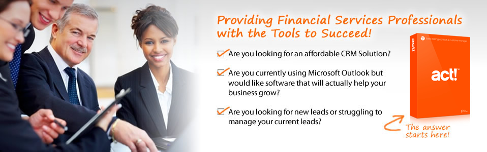 Financial services professionals that use the widely acclaimed ACT! software know the power and advantages it brings to their financial practice. ACT! CRM Software has proven itself by bringing ease of use and powerful features that even a novice can master in just a few minutes. In order to get the most out of ACT!, users need a customized ACT! CRM interface for business tracking and easy access to data that is essential to their practice.
