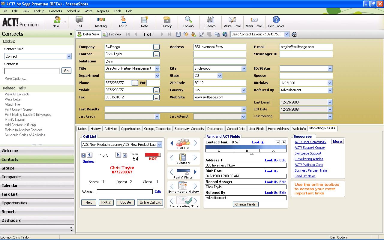 Swiftpage creates a ranked Call List of the most interested contacts based on your email