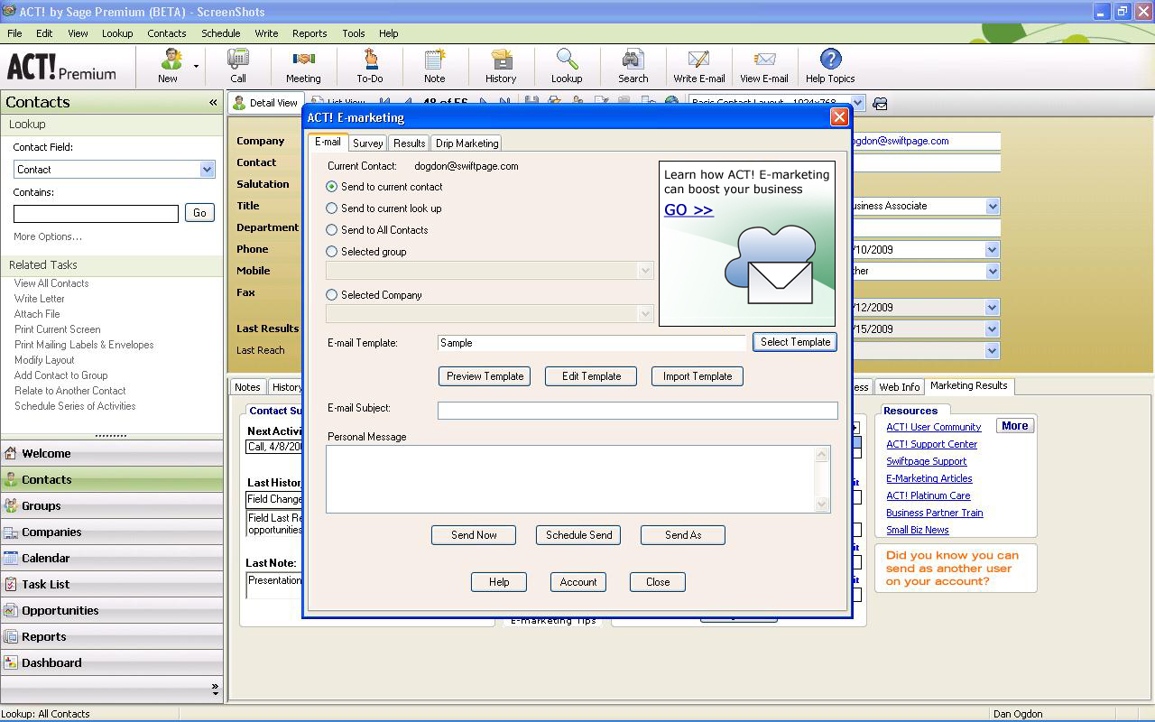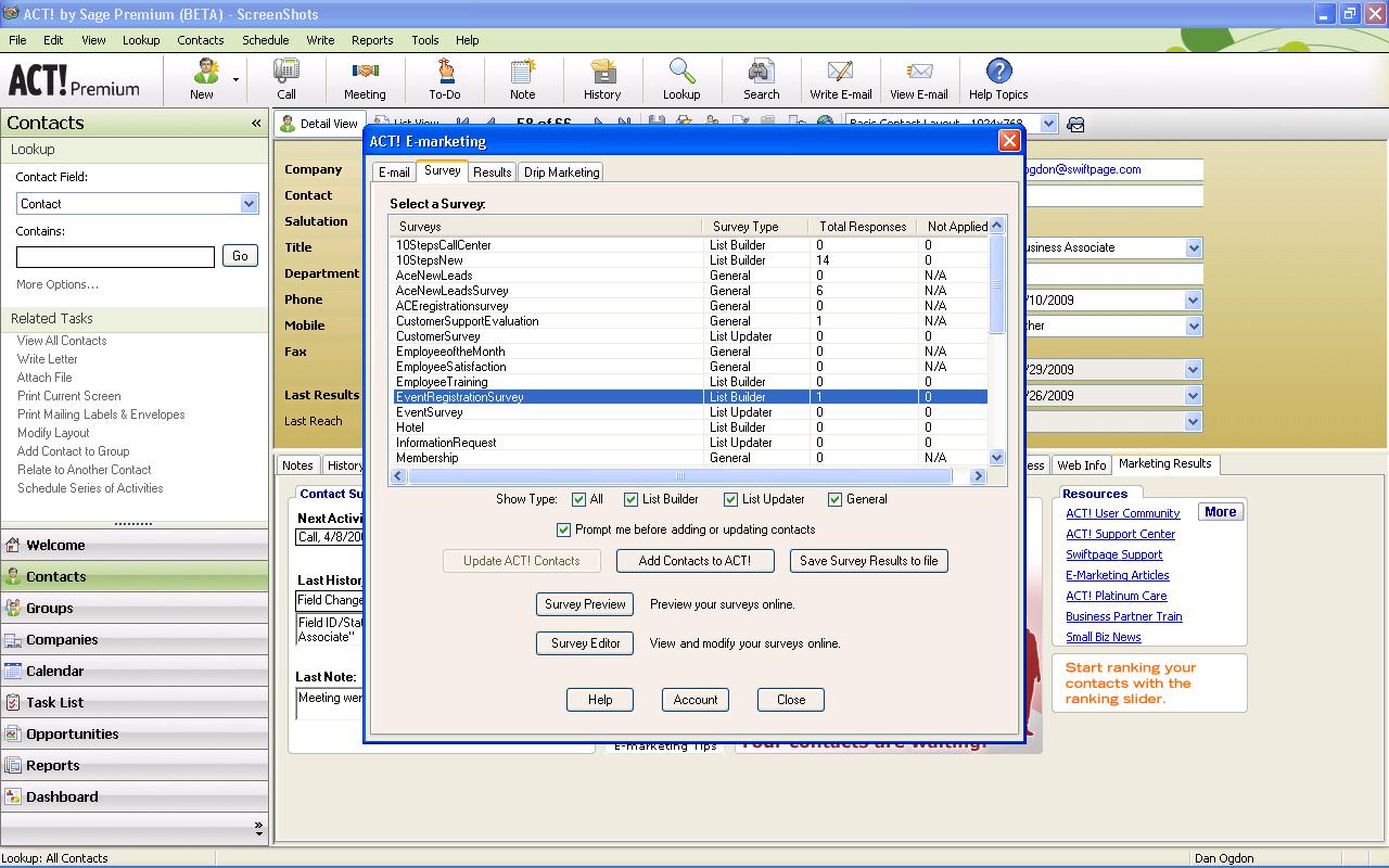 automatically delivered to your ACT! contacts. Set up an Autoresponder emails to automatically contact your survey respondents when they complete your surveys. And with Drip Marketing Autoloader survey respondents are automatically loaded into a Drip Marketing Campaign.