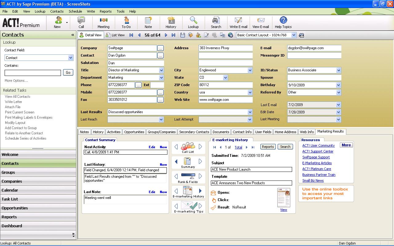 recipients’ interactions with your message. The Marketing Results Tab tells your sales team who to call and what to talk about in one view.