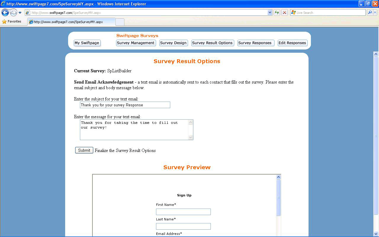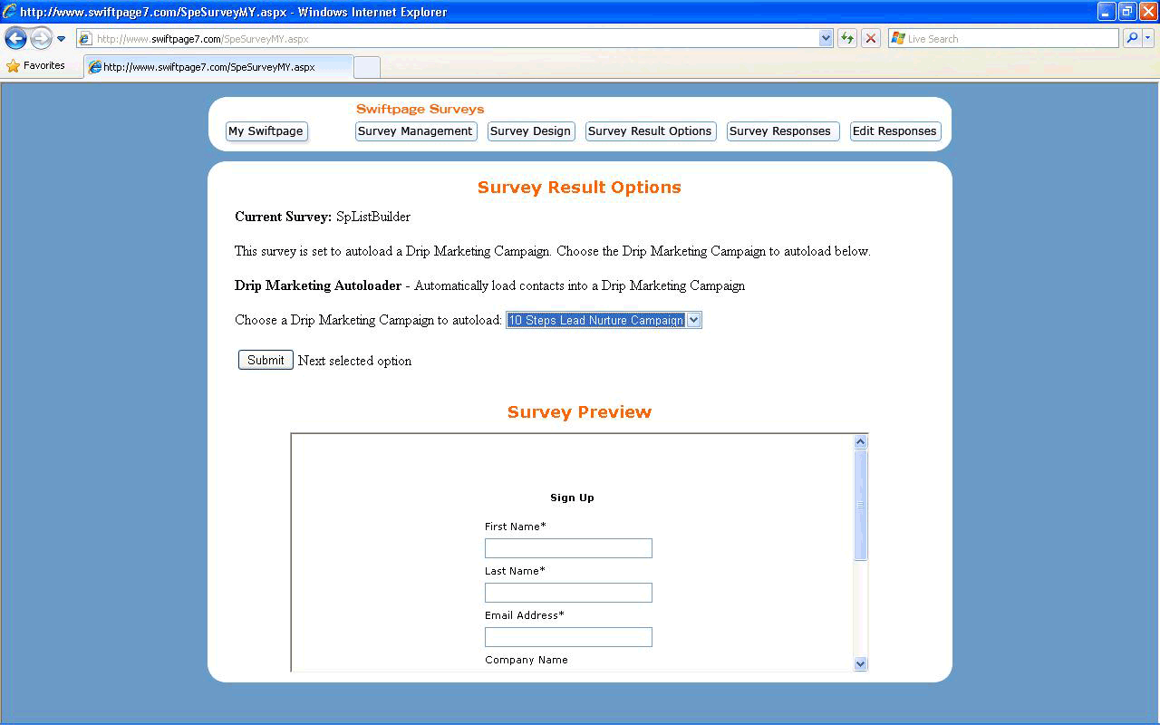 Surveys and Web Forms from Swiftpage allow you to gather valuable information and map your survey responses directly back to specific fields in your database.